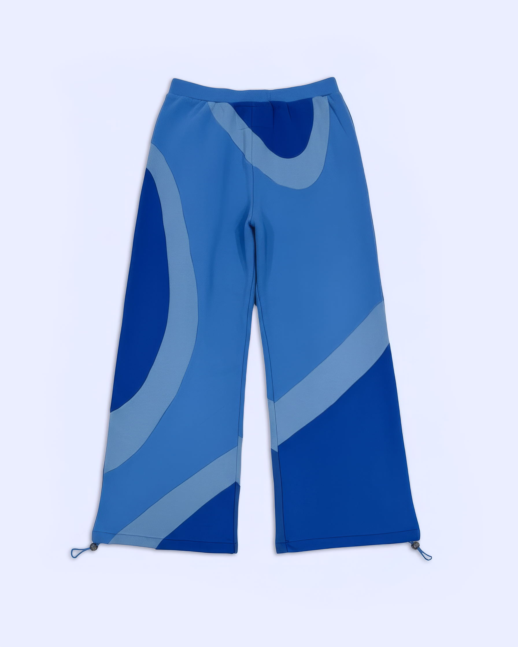 Organic Cotton French Terry 480 GSM (heavyweight). Elastic Waistband with Adjustable Drawstring. Sculpted Seam Details on Front. Wide-Leg Boxy Fit. Adjustable Hem with Cord Stoppers. Embroidered Logo on Front. Hidden Side Pockets. Contrast Blue Inner Label.
