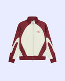 Double zip, High collar Jacket with curved two color panels. Elegant cursive text that reads "Naemotions Day" with a small kiss mark above, all embroidered. One hundred per cent Polyester Fleece.